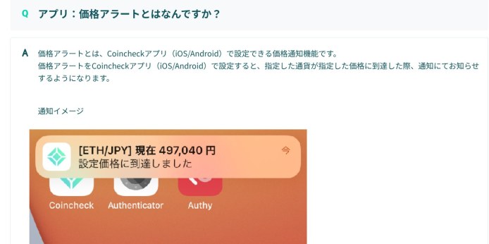 余計なアプリなどを入れたくない、という方はコインチェックの価格アラートを利用してみましょう。